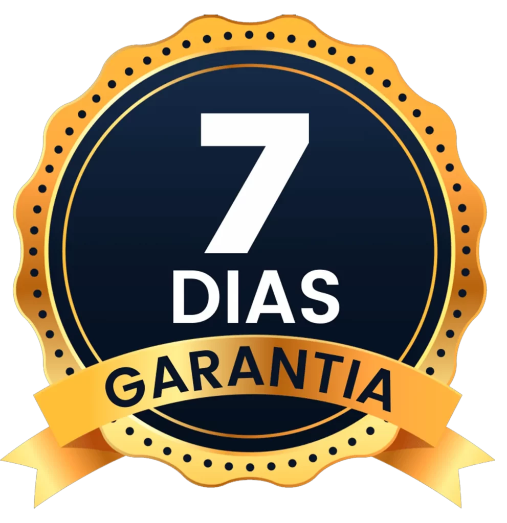 Pra tirar qualquer risco da sua frente, você vai ter uma garantia incondicional de 07 dias.